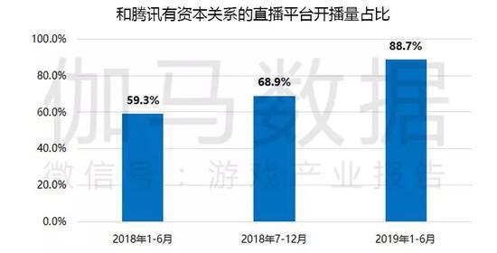 值得注意的是,目前游戏市场上主要的直播平台,和腾讯有资本关系的游戏直播平台开播量占比达到88.7%。