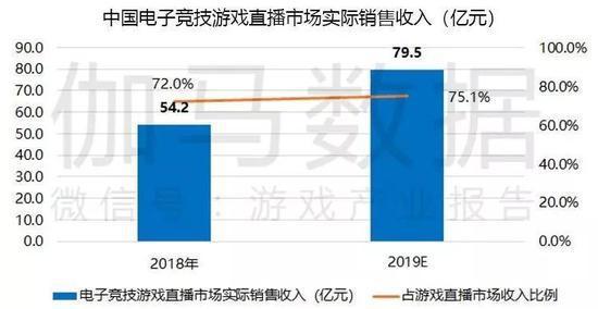 《报告》中预计,2019年电子竞技游戏直播市场收入接近80亿元,占游戏直播市场的收入比例会进一步提高。
