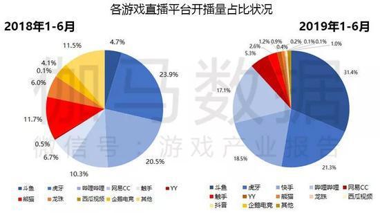 数据显示, 2019年上半年虎牙、斗鱼及哔哩哔哩、快手四家直播平台占据近90%的主要游戏直播平台游戏开播量,中国游戏直播市场马太效应进一步加剧。