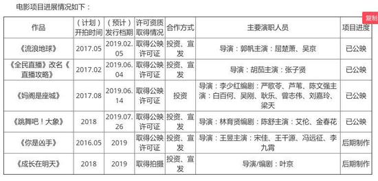 除《流浪地球》外,北京文化在2019年上半年还有《直播攻略》《妈阁是座城》《跳舞吧!大象》等影片。但从票房表现来看,可以说是都不达预期。李少红导演,白百何、黄觉主演的《妈阁是座城》,票房仅刚过5000万元;暑期档上映的《跳舞吧!大象》,因为与最大黑马《哪吒之魔童降世》撞期,最终票房还不到4000万元;爱情喜剧电影《直播攻略》,虽然历时两年策划,但票房只有约20万元。